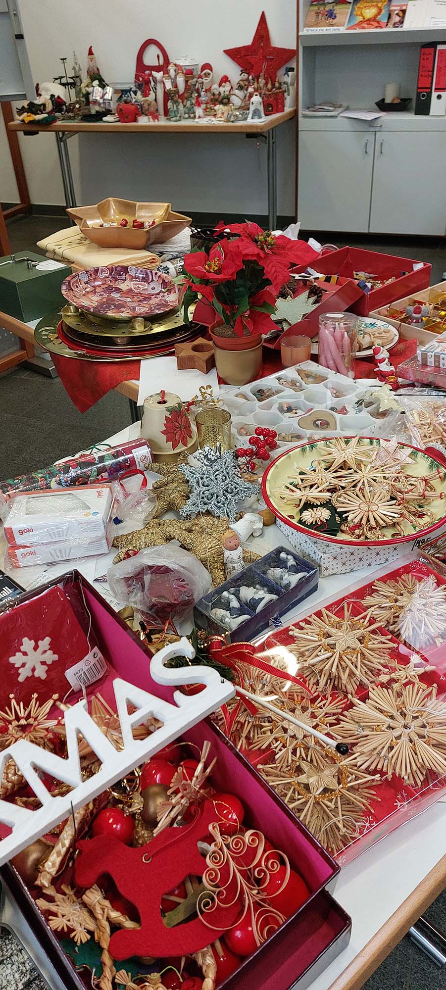 Ein großes Angebot an wunderschönen Artikeln gab es bei unserem Flohmarkt. Es war rührend zu erleben, wie sich die Kunden mit den „alten“ Sachen anfreundeten, um ihnen ein neues Zuhause zu geben. So kamen insgesamt 1.120 Euro zusammen, die wir für die Weihnachtsaktion der Weltmission SCHULEN BILDEN in Sierra Leone gespendet haben. Herzlichen Dank für eure Unterstützung!